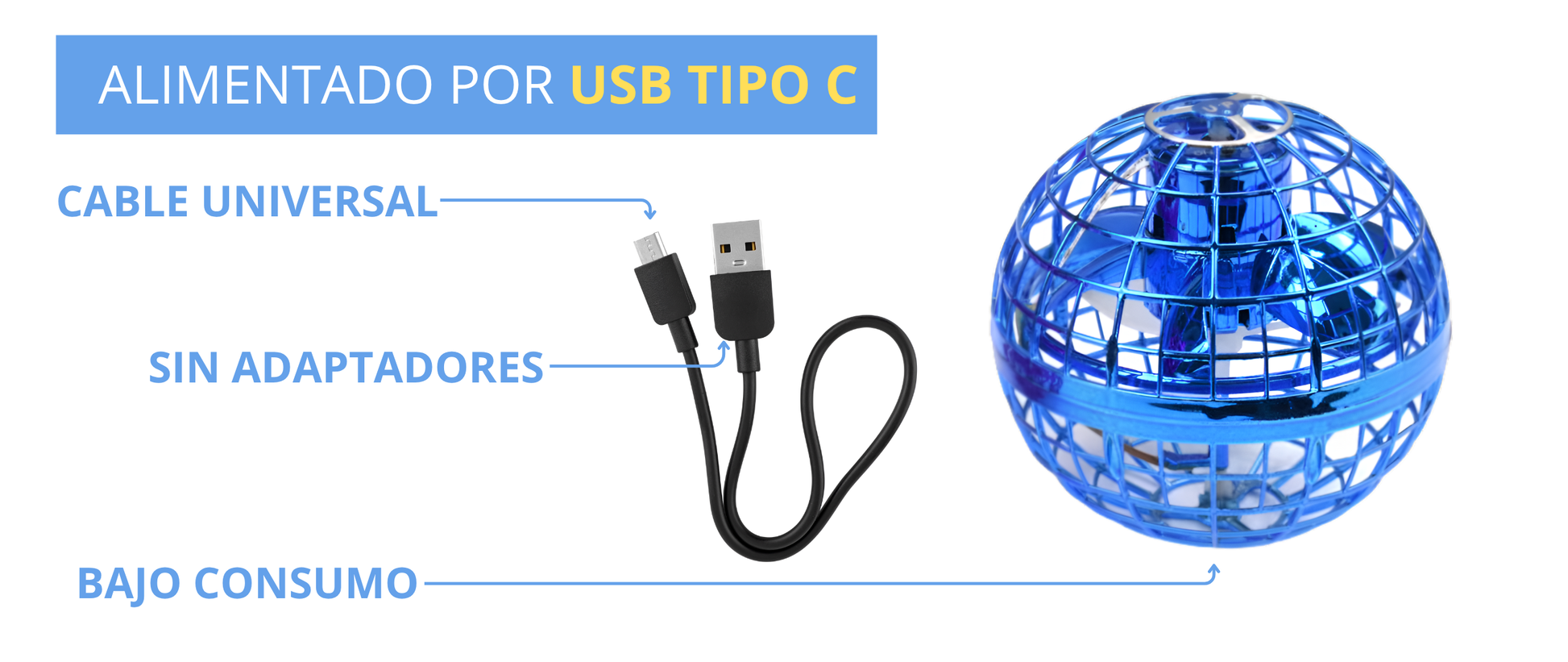 4. Atrápala con seguridad: Su diseño esférico cerrado protege tus manos y el motor interno.