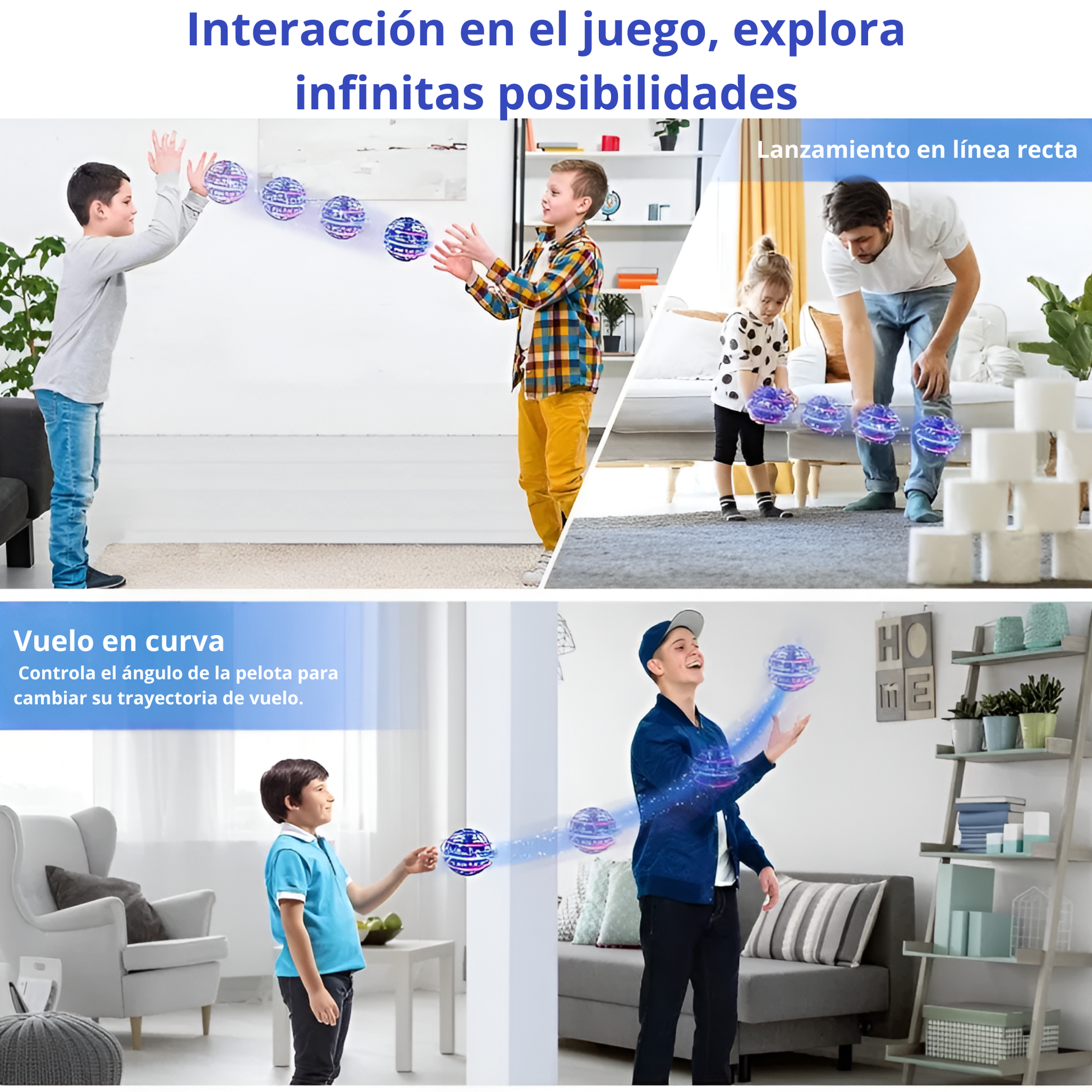 Con su diseño boomerang, la pelota vuela, gira y regresa sola, despertando la curiosidad y la emoción en cada lanzamiento.
